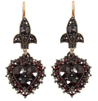 • Bohemian garnet heart earrings w/fleur-de-lys wire Bohemian garnet heart earrings w/fleur-de-lys wire